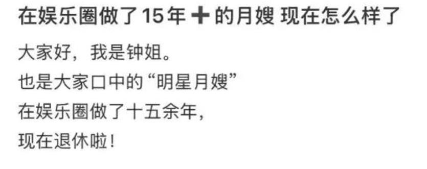 如今这位娱圈的“明星月嫂”钟姐,防范顺应,还也曾为多位明星办事过,当然也成为了话题东谈主物。